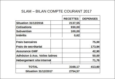 Voir en annexe 2 le bilan de l’année 2017 et la situation actuelle.