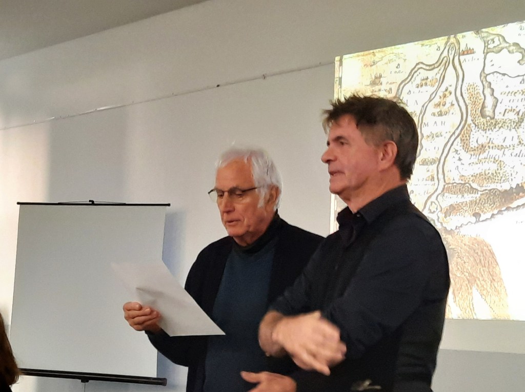 Devant une assemblée de 80 personnes, Mr Campos, adjoint au maire d’Aigues-Mortes chargé de la culture, ouvrait la séance par un mot d’accueil. Notre présidente Michèle Pallier s’exprimait ensuite pour présenter notre association, puis Sylvain Brino, qui connaissait bien Luc Long, le présentait au public.